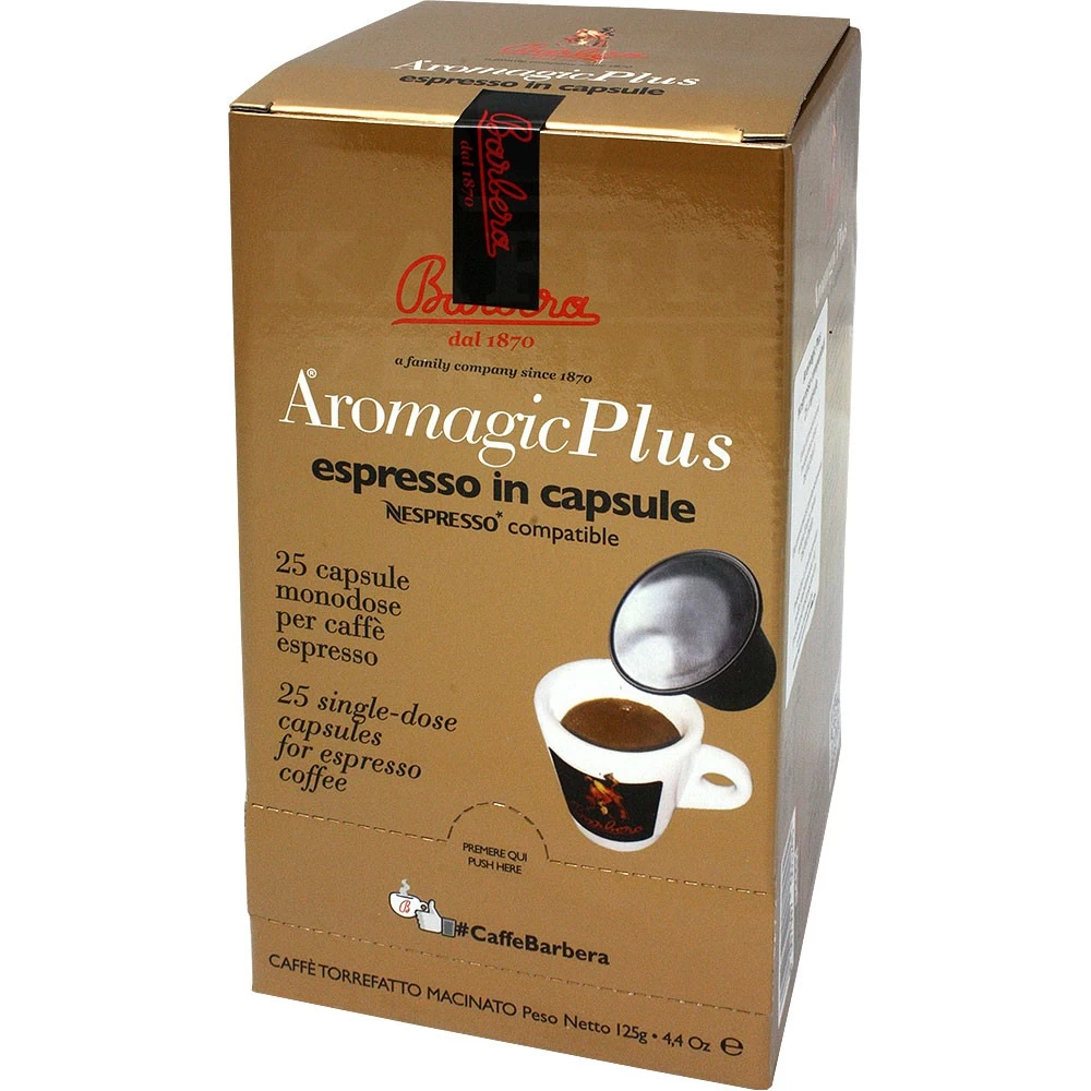 Klein, aber oho – so könnte man die Kapseln der Linie AroMagic PLUS von Barbera treffend auf den Punkt bringen. In jeder der 25 Hülsen steckt ein Blend von sieben erlesenen Rohkaffees aus Brasilien, Mittelamerika und Indonesien. Diese verbinden sich in der Tasse zu einer einzigartigen Geschmacks-Symphonie, welche durch ihre vielseitigen Nuancen die ein oder andere Überraschung bereithält.