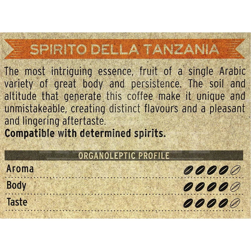Unter den Nespresso® kompatible Kapseln von ist Spirito (della Tanzania) die Röstung mit dem faszinierendsten Charakter. Eine einzige, unglaublich aromatische Arabica-Varietät aus entwickelt diesen würzigen Duft, diesen dichten und zugleich eleganten Körper, so viele und so vielschichtige Aromen, gepaart mit einer ausgeprägten Süße am Gaumen – wirklich einzigartig. Der lang anhaltende Nachgeschmack von Diemme Spirito del Tanzania ist unverwechselbar und äußerst angenehm. Und das ist jetzt nicht nur so dahergetextet – Suchtgefahr!