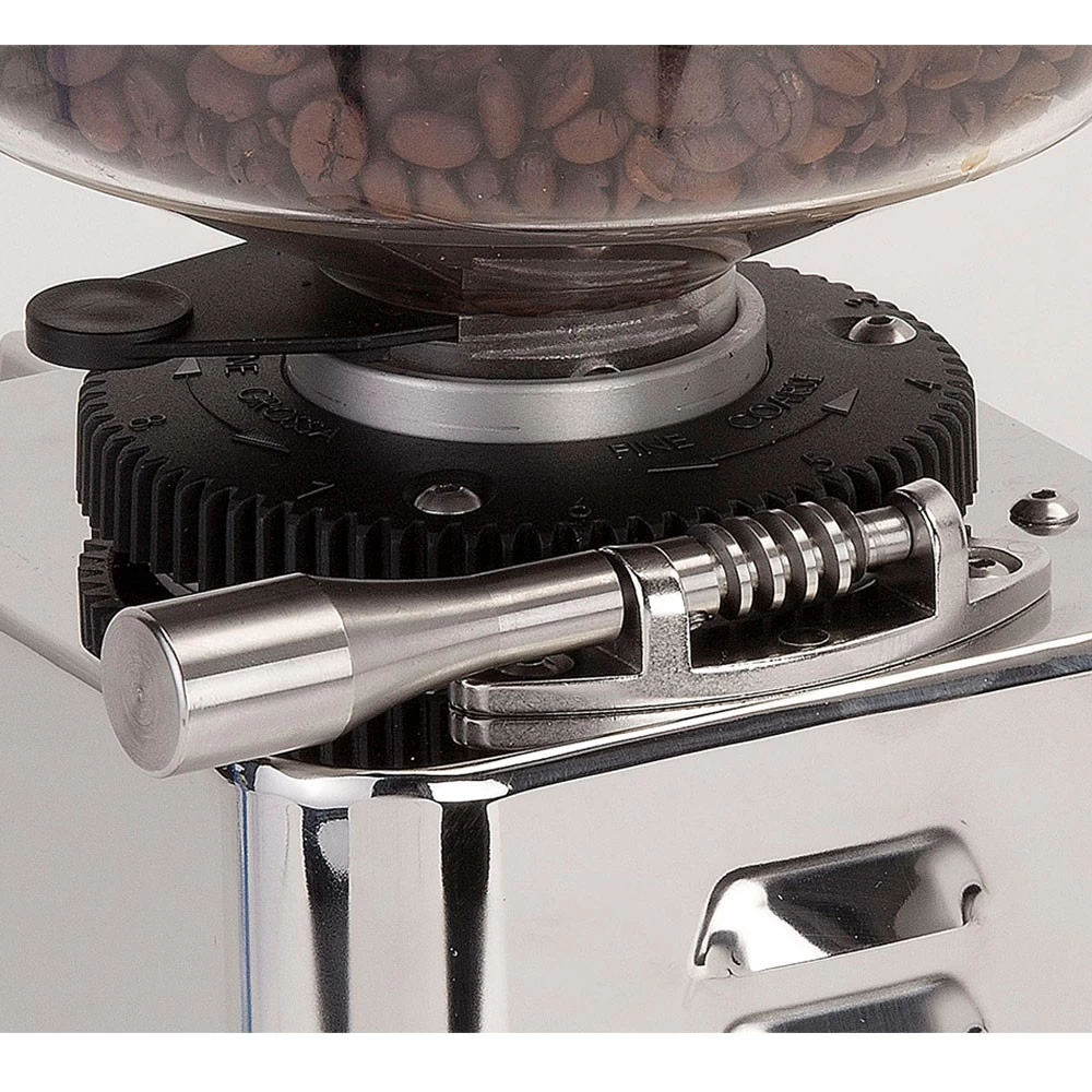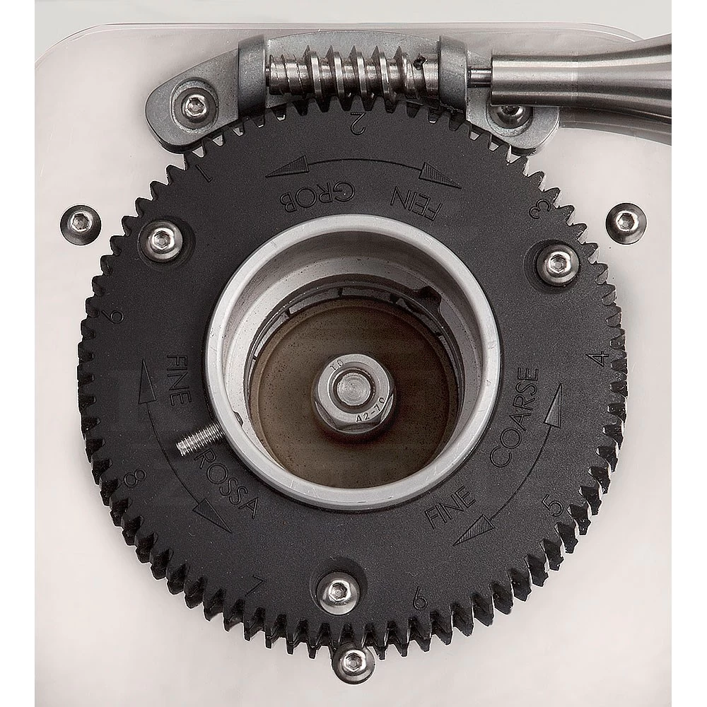 Damit werden 7 g Kaffee in nur etwa 4 Sekunden gemahlen. Der Mahlgrad wird über ein Schneckengetriebe leichtgängig und stufenlos eingestellt. Zur optimalen Anpassung an den verwendeten Siebträger kann die Siebträgerauflage in 2 Höhen eingestellt werden.