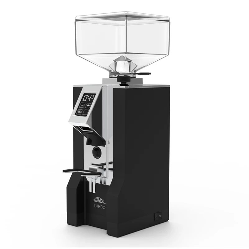 “Turbo“ verspricht schon im Namen selbst, dass die Mühle herrlich schnell mahlen kann. 1,8 bis 2,3 Gramm Espresso kann die Mühle je Sekunde mahlen. Dabei ist sie besonders leise. Die Mühle hat ein TFT-Display und eine integrierte Timer-Funktion. Eureka legt alles darauf aus, dem Kaffeefan eine möglichst bequeme Zubereitung seines Lieblingskaffees zu bereiten. So ist die Turbo 16 CR quasi handsfree, da die Siebträgeraufnahme höhenverstellbar, gummiert und zum Einhängen des Siebträger ist. Der Mahlgrad ist stufenlos einstellbar, die Dosierung kann entweder als 2-fach Portionsautomatik oder auch manual gewählt werden.