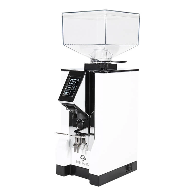 Die Espresso- und Kaffeemühle Eureka Mignon Specialità hat ein stufenlos einstellbares 55mm Scheibenmahlwerk aus Stahl. Die hochwertige Mühle ist aus Aluminium und überzeugt mit ihrer matt schwarzen Optik und tollem, modernem Design. Die Bedienung der Mühle ist sehr einfach. Der Timer kann entweder mechanisch an der Seite oder über das hochwertige Touchdisplay gesteuert werden. Der Bohnenbehälter, welcher herausnehmbar ist, ist mit bis zu 300 Gramm größer als die Behälter der anderen Mignon Modelle.