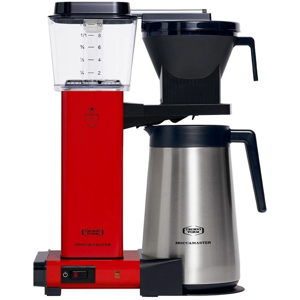Bereits seit 1964 wird Moccamaster in den Niederlanden von Hand gefertigt. Die SCA (Specialty Coffee Association) empfiehlt die Marke als eine von wenigen im Bereich Filterkaffeemaschinen. Die Moccamaster KBGT hat bereits nach einer halben Minute die ideale Wassertemperatur von etwa 96° C erreicht. Dank der hochwertigen Kupfer-Heizspirale wird sie zudem konstant gehalten. Durch den 9-Loch Wasserdurchlauf (Edelstahl) wird das Wasser ähnlich wie beim Handaufguss gleichmäßig auf den Kaffee verteilt, sodass sich die Aromen bestmöglich entfalten können. Sobald der Brühvorgang beendet ist, schaltet sich das Hauptheizelement automatisch ab (Auto-Off-Funktion). In der der vorgewärmten Thermoskanne bleibt der Kaffee anschließend bis zu zwei Stunden warm.