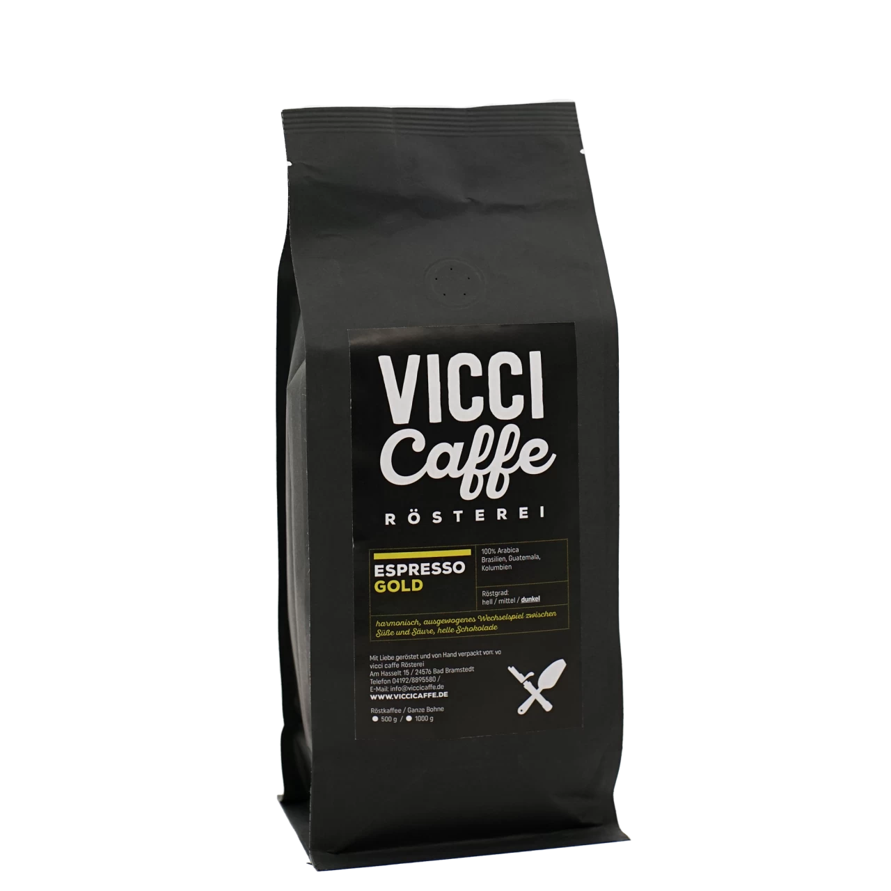 Vicci Espresso GOLD ist der geschmackliche Einstieg in die Welt von Vicci Caffè. Daher sprechen wir auch von 80 % Vicci. 90 % gibt es dann bei und mit erhalten Sie dann die vollen 100 %. Aber Achtung: Einsteiger sollten sich ein paar Umwege gönnen und nicht sofort den Gipfel erstürmen wollen.